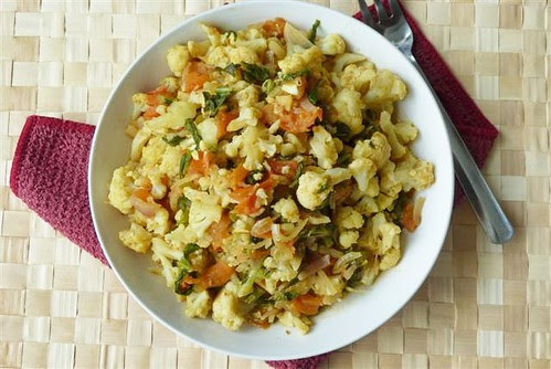 Cauliflower, Radish Leaves and Tomato Spiced Curry